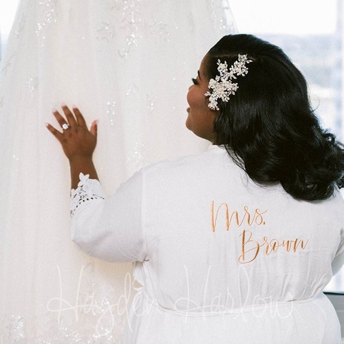 White Cotton Robe Matching Lux Lace Trim Monogrammable Etsy