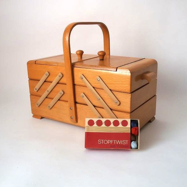 Vintage Sewing Box Mid Century Sewing Basket Wooden Sewing Etsy De