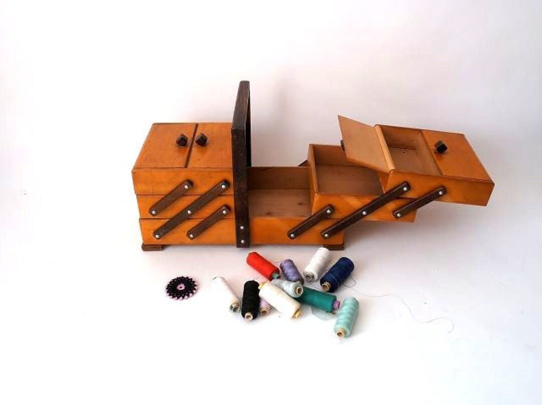 Vintage Sewing Box Sewing Basket Mid Century Wooden Sewing Etsy